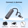 Experience seamless connectivity with the EVM Dual Type-C + USB A 3.0 Hub (CA3. 0HUB). This stylish 4-port hub lets you connect up to four devices like digital cameras, smartphones, external drives, and printers to your PC or laptop.